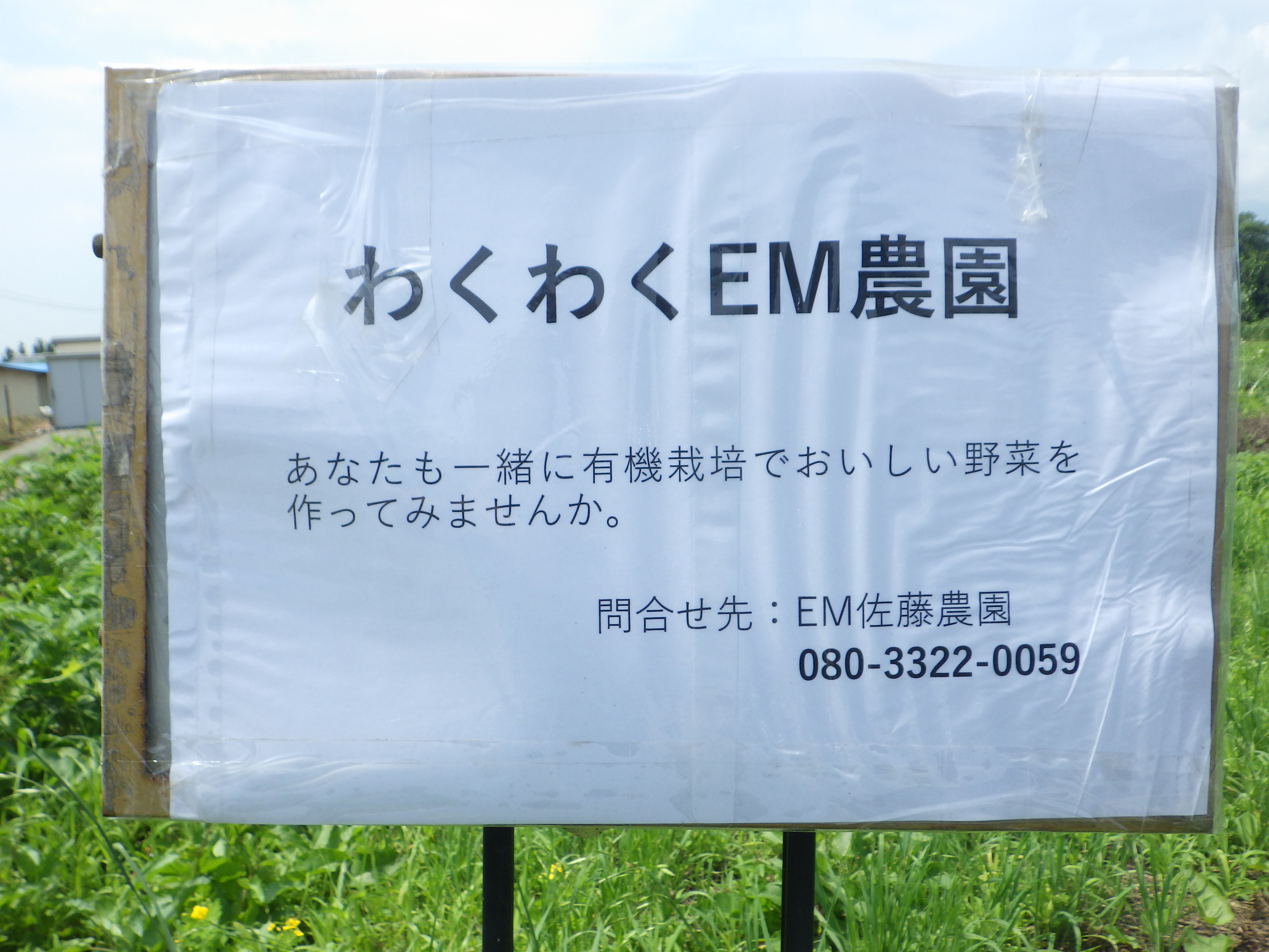 In his “Waku Waku (exciting) EM Farm”, he grows cucumbers, crown daisy (shungiku), zucchini, leeks, pumpkins, cabbages, etc. Mr. Sato joined a group called "Sakura Farmers" that sells EM vegetables and fruits at farmer's markets in many different places throughout Japan.
