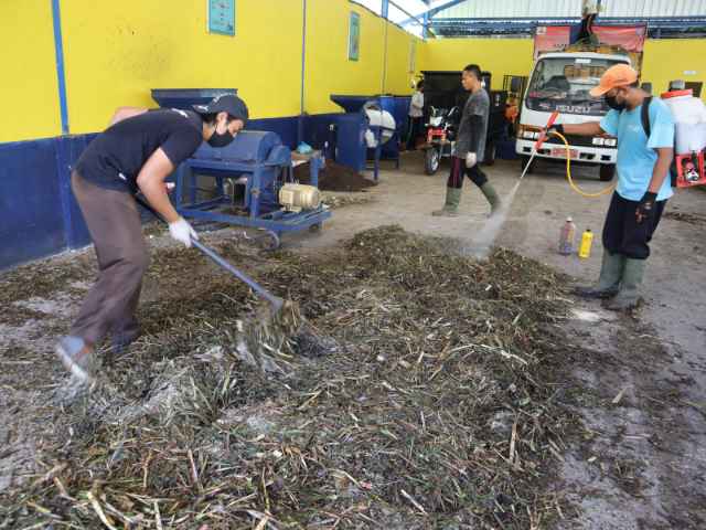 Waste is sorted into organic and non-organic categories. Some of the household waste, previously sorted by each family, is transported to TPS 3R for composting. The composting process includes: