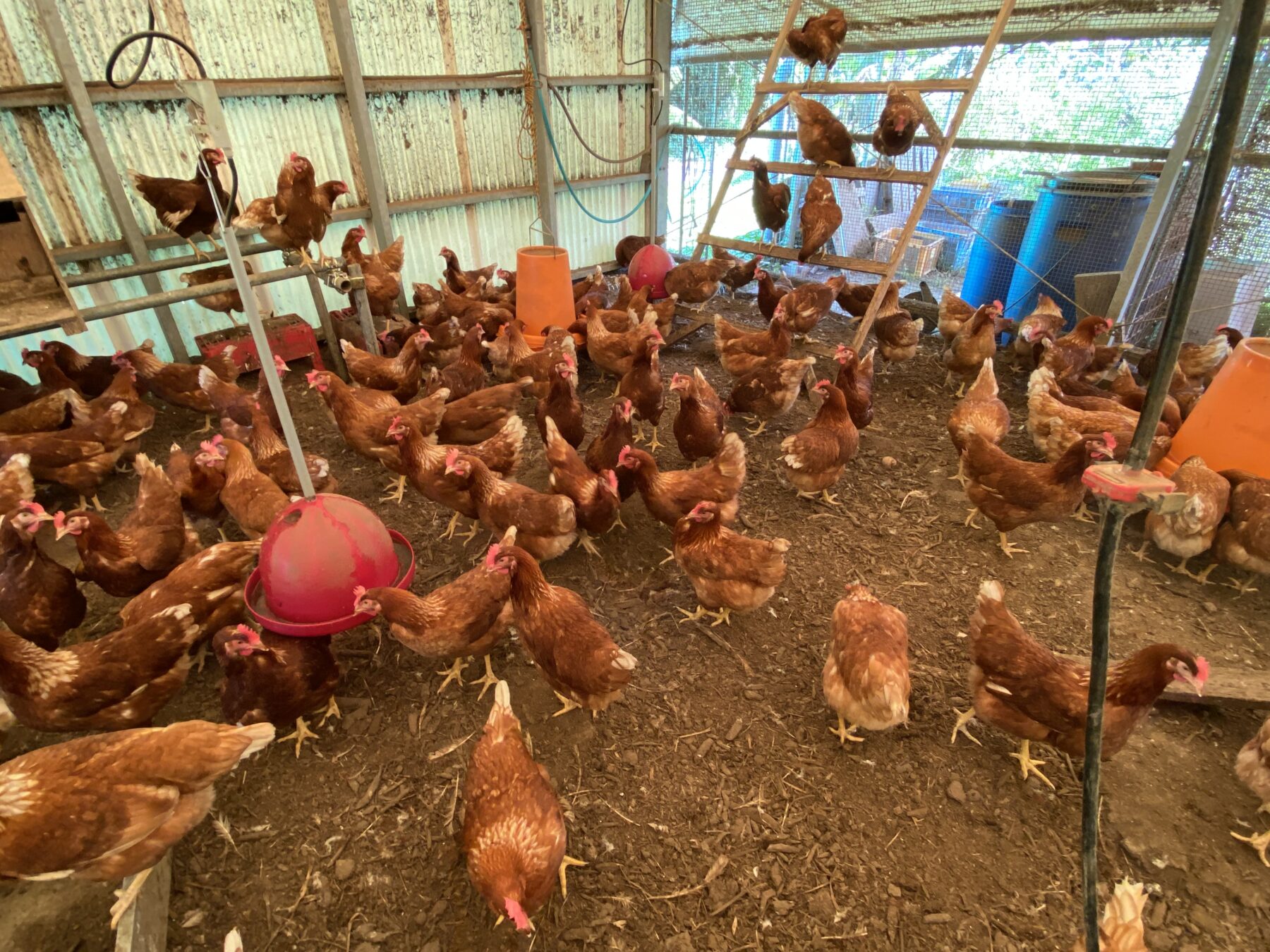 They have transformed previously abandoned agricultural land using EM Technology and now supply fresh organic vegetables and free-range eggs branded "Mana" eggs, to local supermarkets and our EM hotel.
