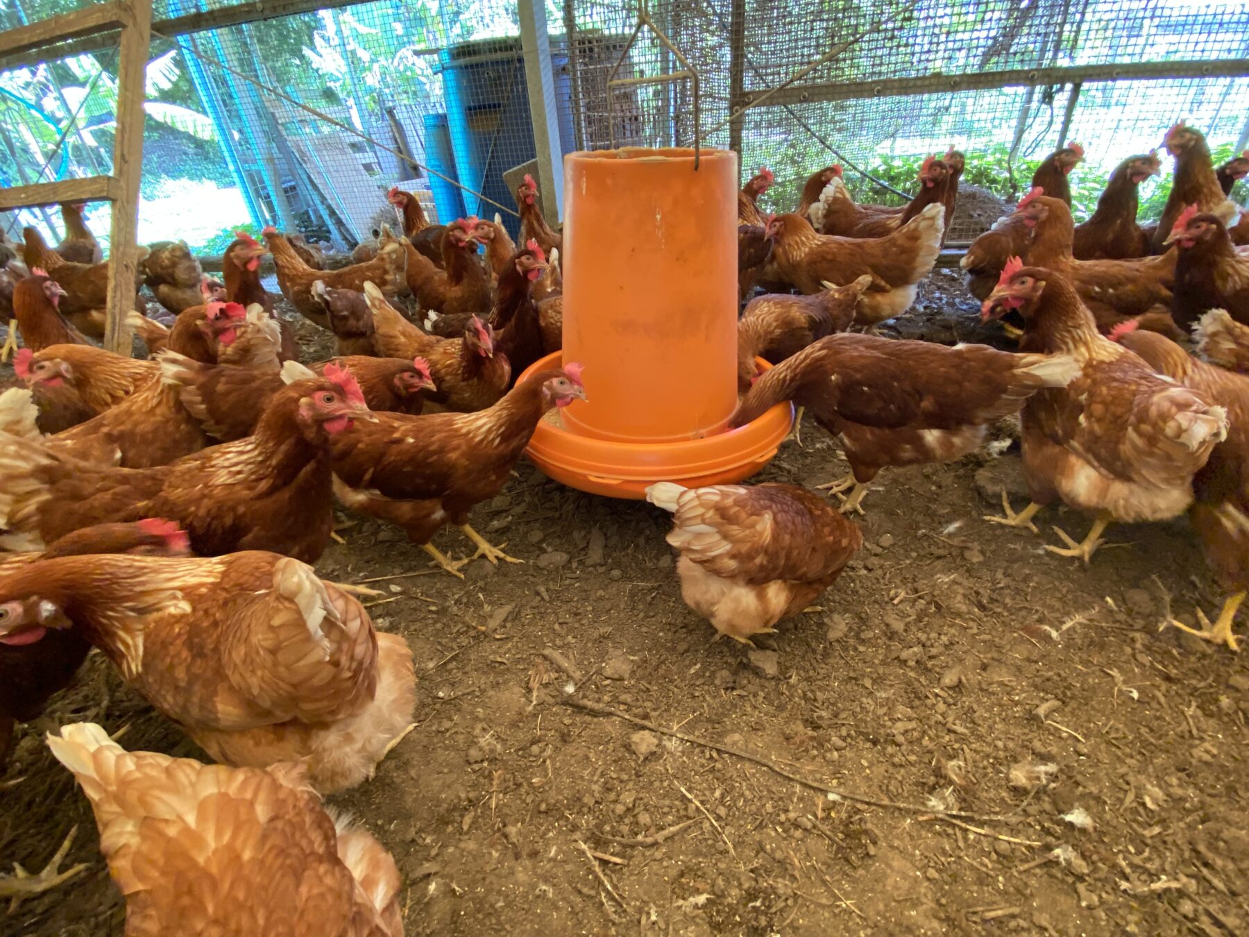 About 1,400 chickens are raised in a free-range coop, where AEM is used in their environment, drinking water, and feed to support health and reduce stress.