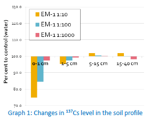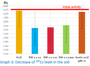 of cesium-137 increased by 50% after treating the soil with a 10 fold dilution of EM-1. Contrary to their
