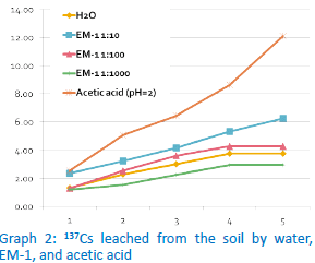 pure water. Weak EM-1 (1:1000) solution seems to reduce the mobility of radionuclides. However, with