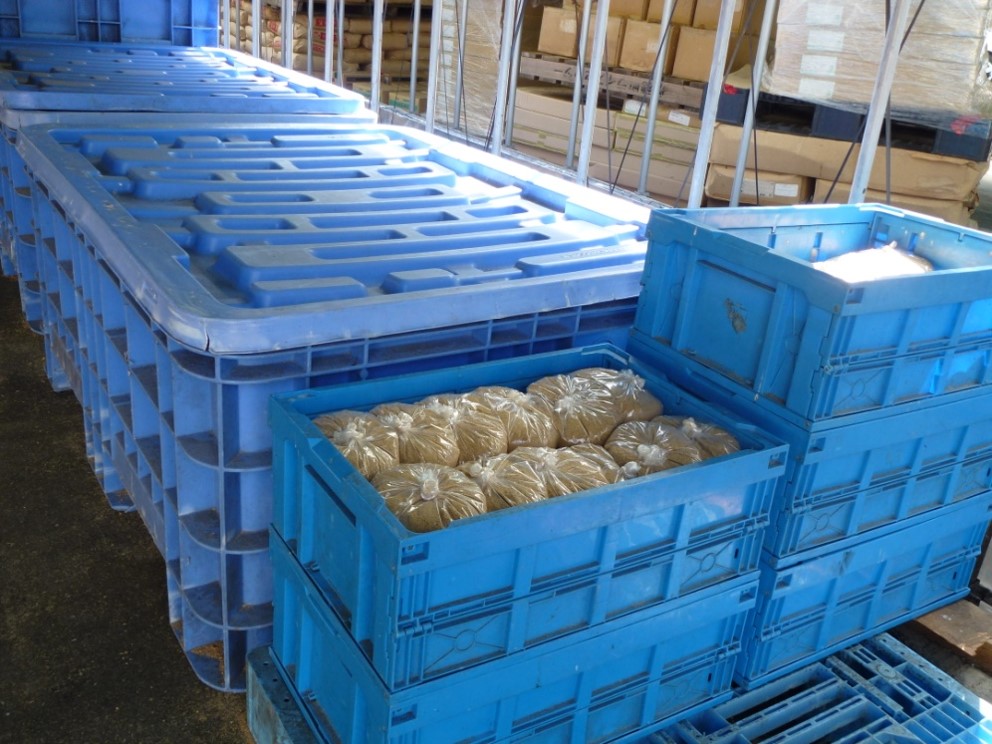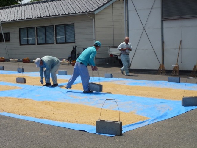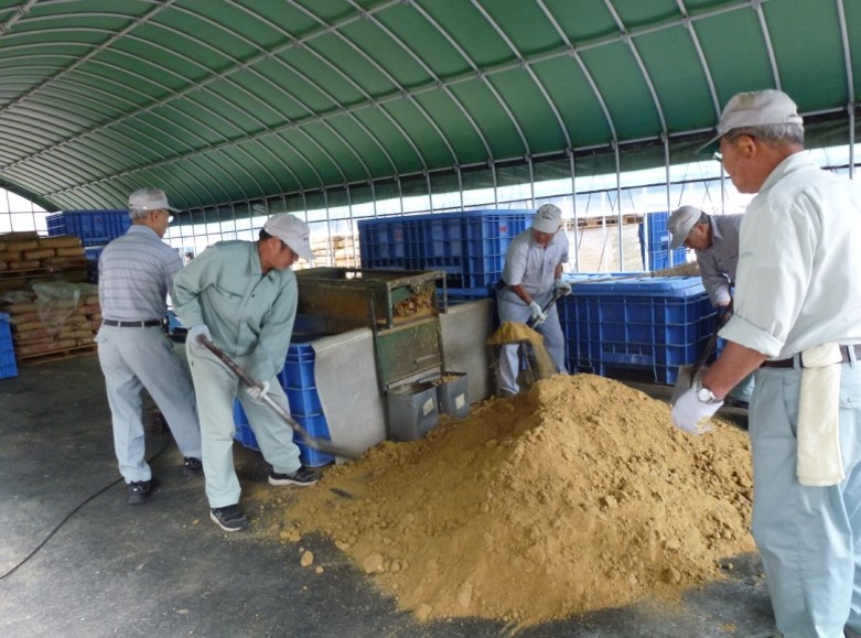 First, EM Bokashi is produced using rice bran and Activated EM・1. EM Bokashi is put into bags to be distributed to each household.