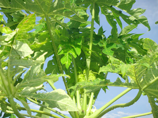 Even though mangos were not sprayed with pesticide, they are surprisingly fruitful in open ground, and passion fruits are also impressively fruitful. In addition, the sprouts of papaya that had been infected with viruses have grown normally (Photo 5), an example we have never been before, for usually infected papaya shrink at the tip and the fruits are misshapen.