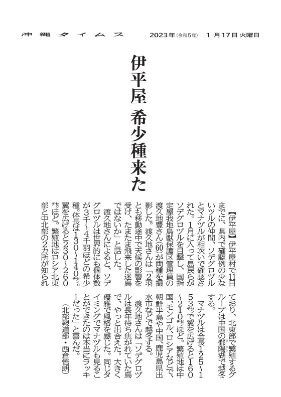 Okinawa Times, Tuesday, January 17, 2023