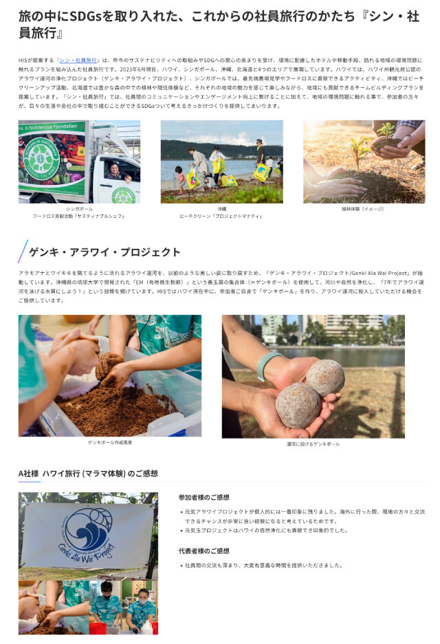 In February 2024, HIS, a travel agency, received the incentive Award of the JATA SDGs Awards in the travel industry for its company tour that included its well-received “Genki Ball Making Experience." In July, the 2nd JATA SDGs Awards and Tour Grand Prix 2024 awards ceremony was held, and HIS won the most awards among travel agencies, the JATA (Japan Association of Travel Agents) SDGs Award, and the Encouragement Award for the EM Mudball Tour.