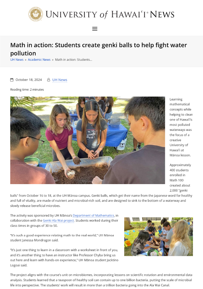 University of Hawaii, Math in practice: Students make Genki Balls to help fight water pollution