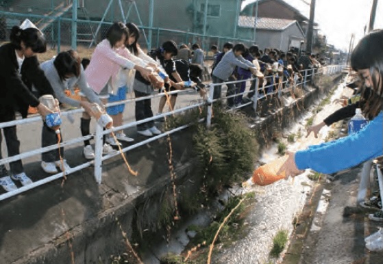 In the Ise Bay, “EM Exciting Net Mie” was launched in 2007, in cooperation with the local fisheries and school children, and they are trying to improve water system. In 2009, three groups, the Nagoya Horikawa Lions, the Horikawa Eco Club and EM Aichi NPO, began applying activated EM into Horikawa River, which flows through the center of Nagoya city down to Ise Bay. Horikawa River was contaminated by the influx of industrial wastewater and household sewage, and had problems with odor and poor water quality, but now the bad odor is greatly reduced, and biodiversity is returning.