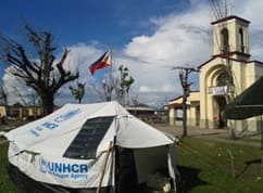 A tent served as the San Joaquin Bgy Hall where bulk of work has been for preparation of Death Certificates. While the town did not have a source of electricity yet, Mr. Klepp set up his solar panel for the Hall’s use to power up their laptop and printer.