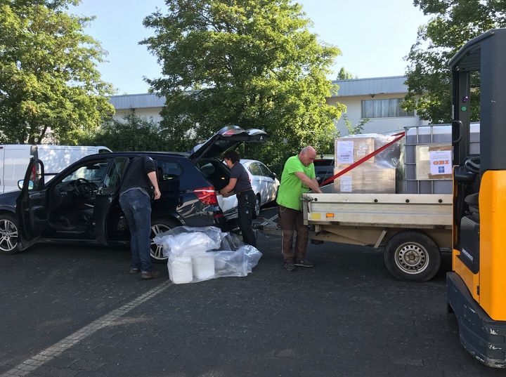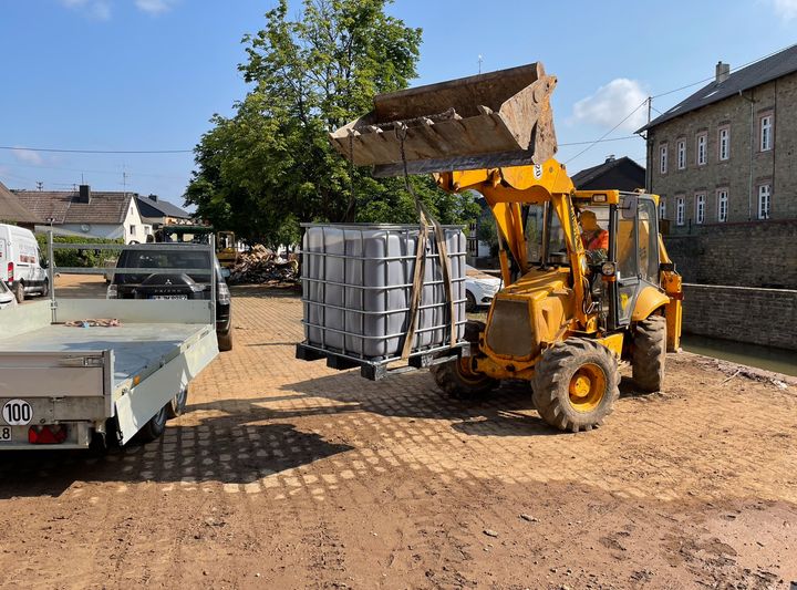 At the same time, they contacted OBI, a home improvement supply company, to ask for cooperation. OBI willingly agreed and immediately sent pressure sprayers to Meckenheim, one of the most devastated areas.