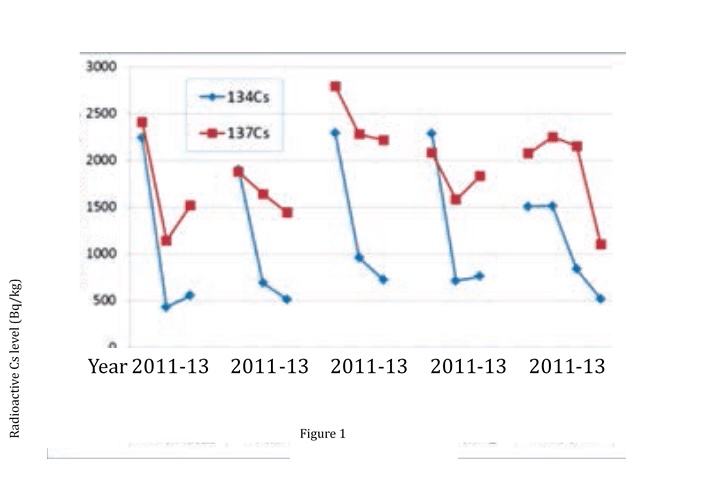 Furthermore, EM farmlands where EM・1 and EM compost were applied for more than 15 years, the radioactive Cs concentration in soil (ref: orchard, field crops, paddy field) resulted as shown in the Figure 1. Since the radioactive Cs concentration seen in the Figure 1 is lower comparing to theoretical values, we assume that the activity of the effective microorganisms in the soil have an important impact on the reduction of radioactive Cs.