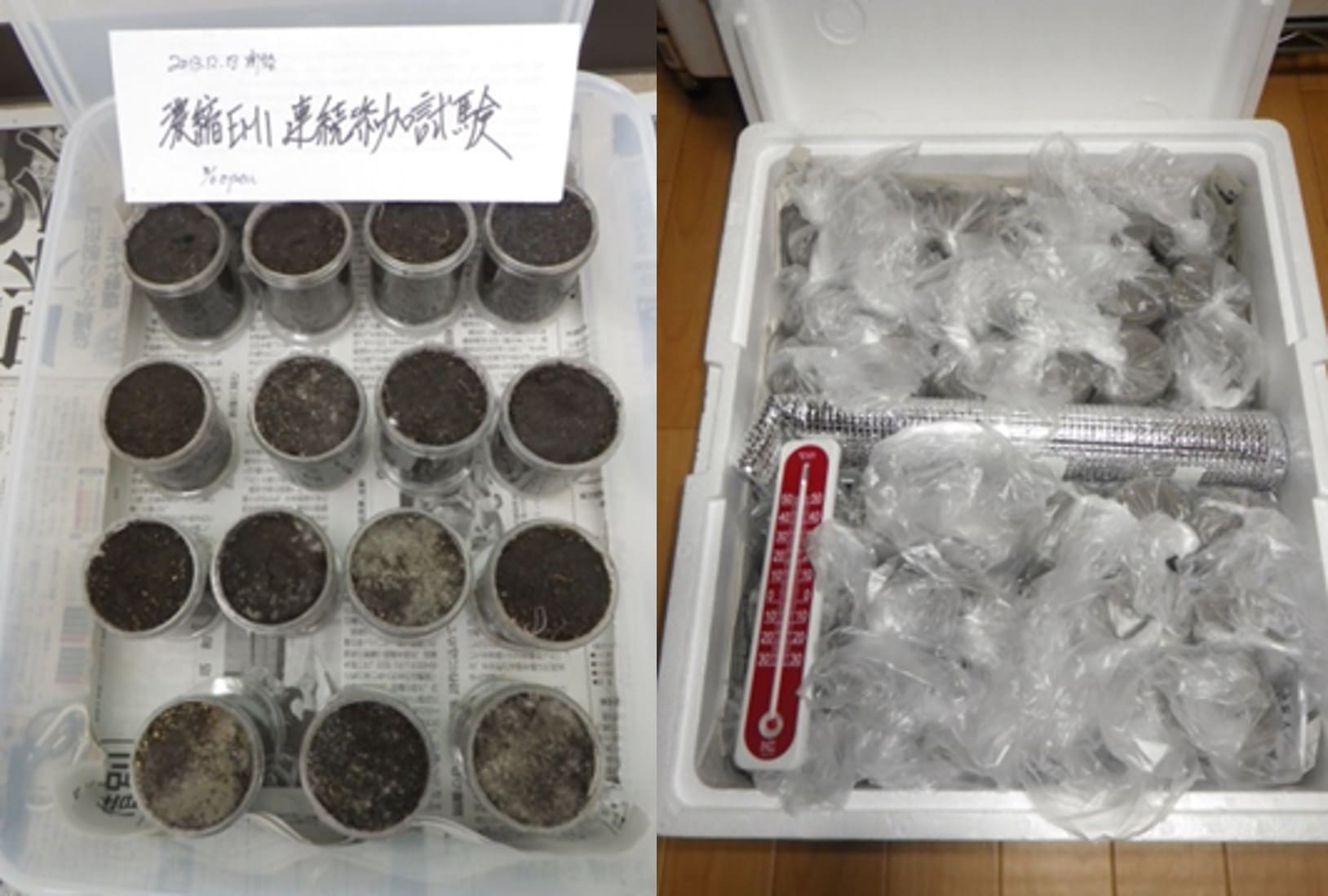 First, the contaminated soil containing cesium was air dried, and then the soil was screened with a 1.5mm mesh sieve and stirred well. Next, the soil was put into U8 containers so that to total weight was exactly 80g on the precision balance. Then the 134Cs and 137Cs of all the samples before the experiment were measured with a sodium iodide scintillation spectrometer.