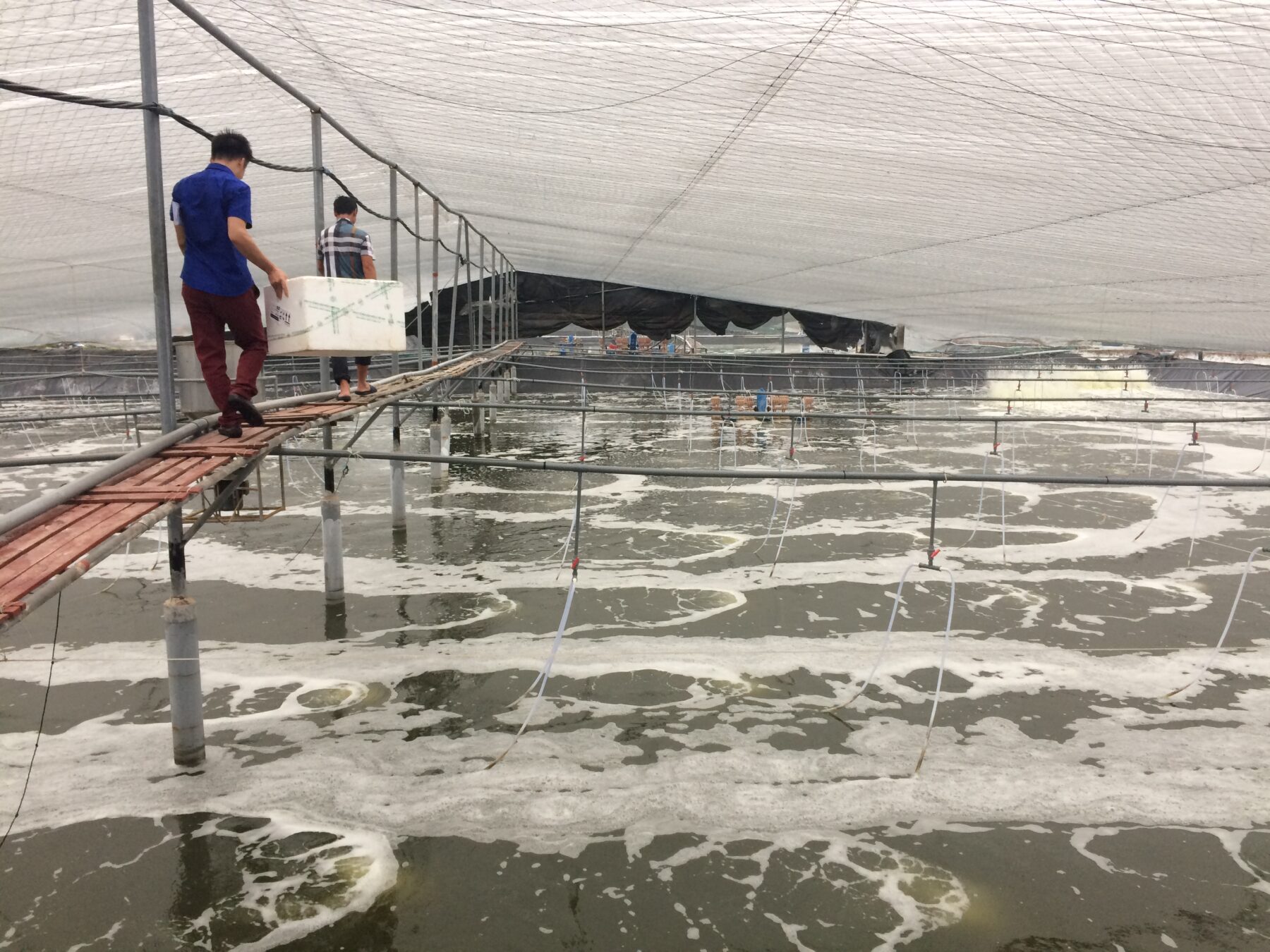 They also use other microbial materials in the water storage pond where seawater is treated before going into the cultivation ponds.