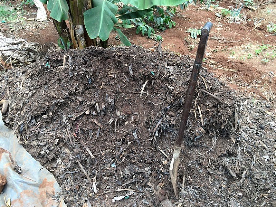 EM Technologies takes the vegetable wastes collected by the NGO and compost them with EM and use the finished compost at this model farm.