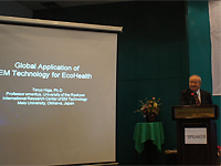 At first glance one might think that psychosomatic medicine and EM are unrelated, but EM is necessary, in one form or another, as a first step in all medical treatment. In the poster sessions, in addition to presentations on how safe EM-X Gold is, the inducing of heat protein, and how EM prevents nucleation in EB virus, there were presentations on the use of EM in the Thai flood, and an example of the use of EM in large-scale construction in Malaysia.