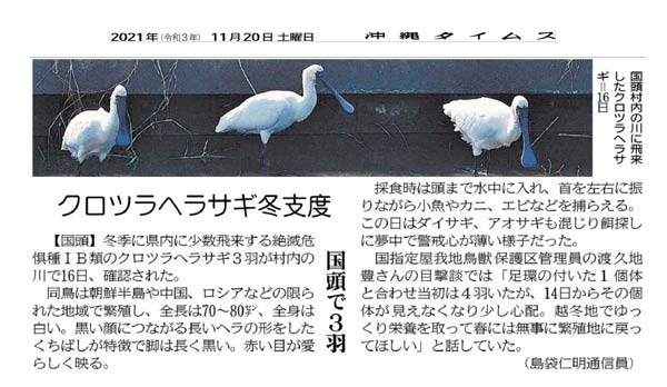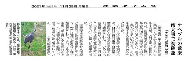 “A large, elegant-looking bird” November 29, 2021 (Courtesy of Okinawa Times)