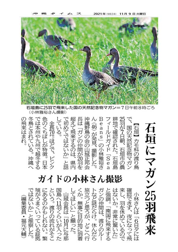 Photo by Mr. Kobayashi, field guide November 15, 2021 (Courtesy of Okinawa Times)