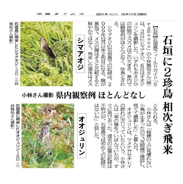 Photographed by Mr. Kobayashi October 17, 2021 (Courtesy of Okinawa Times)