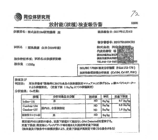 Sample Name: Kikuchi Farm White Rice (FY 2017)