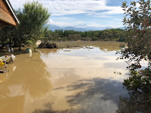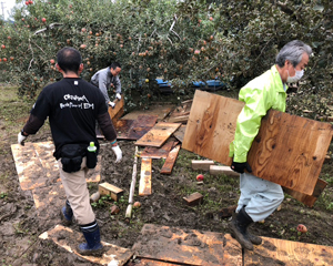 On October 13, 2019, Typhoon No. 19 brought heavy rain and the flood banks of the Chikuma River, where the water level rose, collapsed. An apple orchard in the lowlands next to the Chikuma River was submerged over a wide range of area. Last year’s harvest and shipment had just begun in early October.