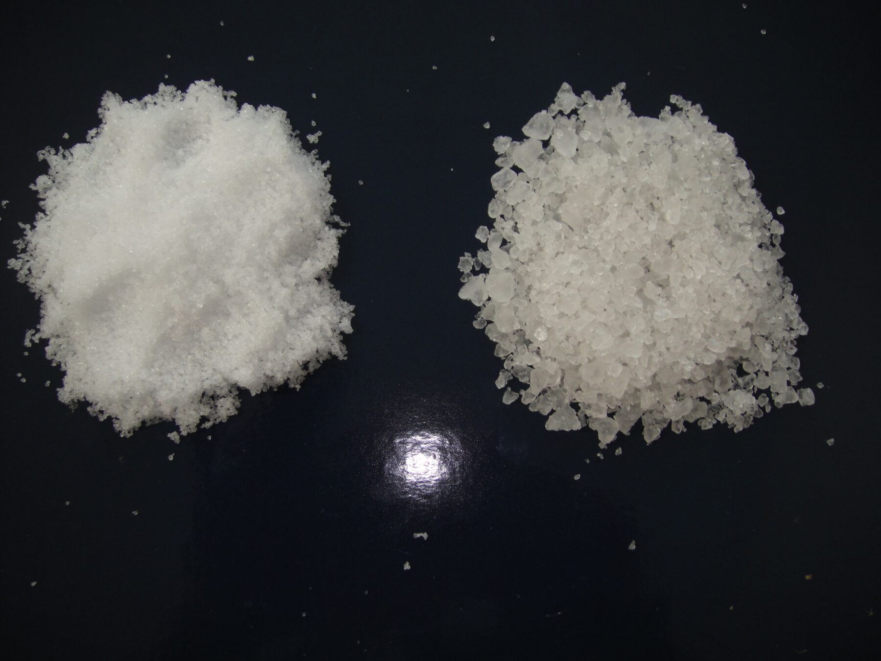 Photo 2 shows the particle size of salt. The price of the powdered salt on the left is around ¥30,000 per ton, which is convenient to use for weeding when crops are not planted. The price of medium granular salt *on the right is around ¥40,000 per ton, and it will be used when applying salt as supplementary fertilizer. Powdery salt dissolves quickly, so there is a concern that salt damage may occur, and moreover, if it rains, it will run off quickly.