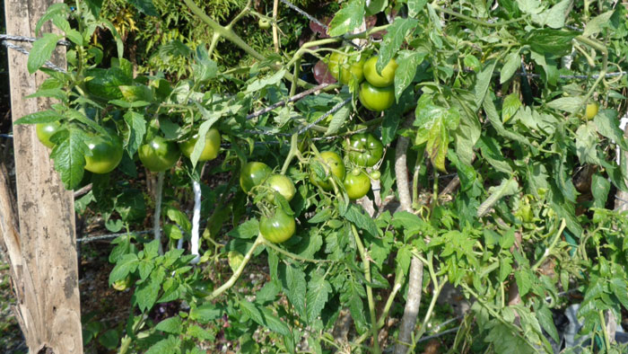 Photo #1: Tomatoes in the perennial grass biomass growing vigorously