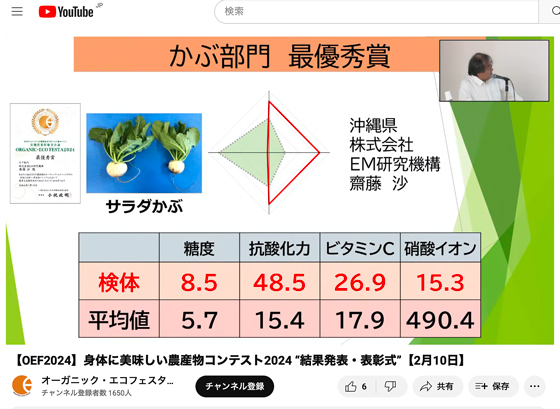 Amrita Farm, a farm in Niseko Town, Niseko, Hokkaido, won the Grand Prize for the second year in a row at the nutritional value contest at the Organic Eco Festa 2024 (organized by the executive committee of the Japan Organic Agriculture Promotion Association and others) held in Tokushima Prefecture in February. This is the second consecutive year that the Farm has won the Best Awards in the “Spring/Summer” and “Autumn/Winter” categories, following last year, when they entered the contest for the first time. The farm was also selected for the Grand Prix Award, the top prize in all categories of this contest, which has been a great boost to its confidence.