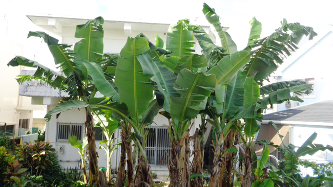 I noticed that the banana leaves outside the barrier of the Blue Sky Palace were standing up unusually firmly, so after that I checked all the other bananas, papayas, etc. All the bananas and papayas are growing well with no evidence of weevil or virus damage observed.
