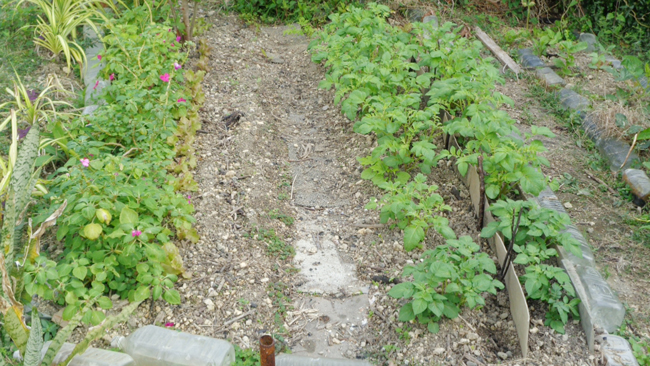 In order to prove the results botanically, I am challenging myself to grow self-fertilizing potatoes, which were considered absolutely impossible to cultivate in Okinawa. In early October, I planted the shallowly dormant Aimasari Potatoes (Photo 5). Photo 6 shows the state of the plants after forty days. If they grow well, I plan to harvest them in February, refrigerate them for a month, plant in March, and harvest in June to achieve twice as many potatoes.