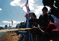 Throwing EM Mudballs into the water in the Lat Karbang district in Bangkok.