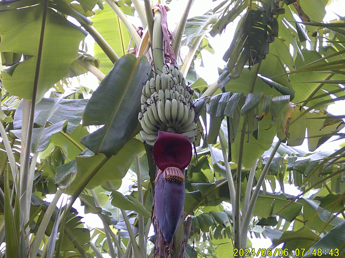 Even a rainy season like this year’s is an opportunity for bananas to push the limits of how far they can improve. After the heavy rains from the typhoon at the end of August last year, I mixed 2 kg of EM Gravitron charcoal and 50 kg of salt per 10 ares and spread it over the entire orchard. Since then, once every three months I have been applying 25 kg of salt mixed with 1 kg of EM Gravitron charcoal. Due to the rains since April and the rainy season in May, the banana fields have become a big jungle, producing huge bananas, larger than any I’ve seen before (Photo 7 and 8).
