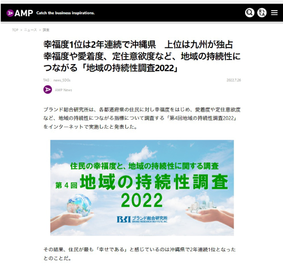 This “Survey on Happiness and Regional Sustainability” differs from conventional indicators since it is vital for building a completely new vision of the future, so I will introduce the full text here.