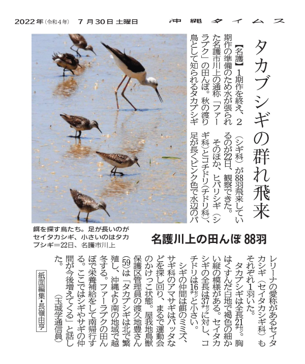 Okinawa Times, Saturday, July 30, 2022