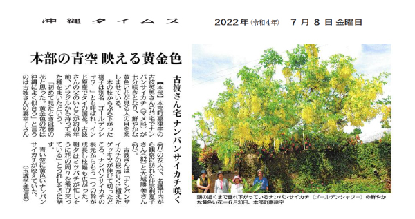 In the past, I used to envy Hawaii when its flowers were in full bloom, comparing it to the miserable condition of the Golden Showers in Okinawa, where typhoons made it difficult for the flowers to fully bloom. Now, however, they bloom as well as they do in Hawaii. (Articles 1 and 2)