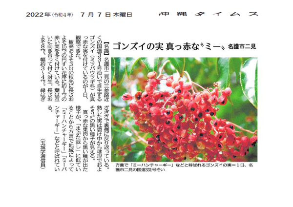 Gonzui fruits called “mihan chagi” in the local dialect along Route 331 in Futami, Nago City on July 1st.