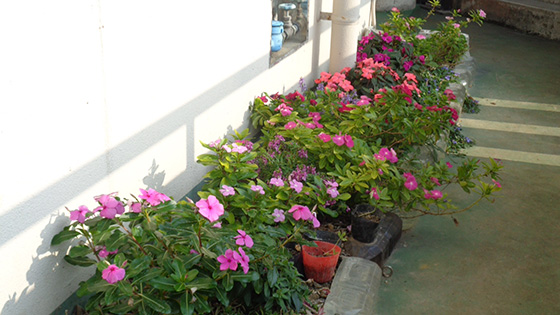 A flower bed on the veranda of the 3rd floor office. The soil is 5 to 7 cm deep.