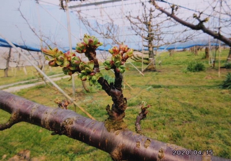 When the first spring had come since the use of EM charcoal, gigantic buds appeared in the orchard.