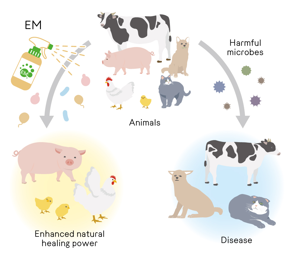 Managing the living conditions of livestock is a top priority for farmers. Odor control, pathogen reduction, and maintaining animal health are essential for productivity and welfare. Manure and leftover feed often rot due to harmful microbes, creating foul odors and encouraging the growth of disease-causing bacteria. EM (Effective Microorganisms) addresses these issues at the source, helping to maintain a cleaner, healthier barn environment.