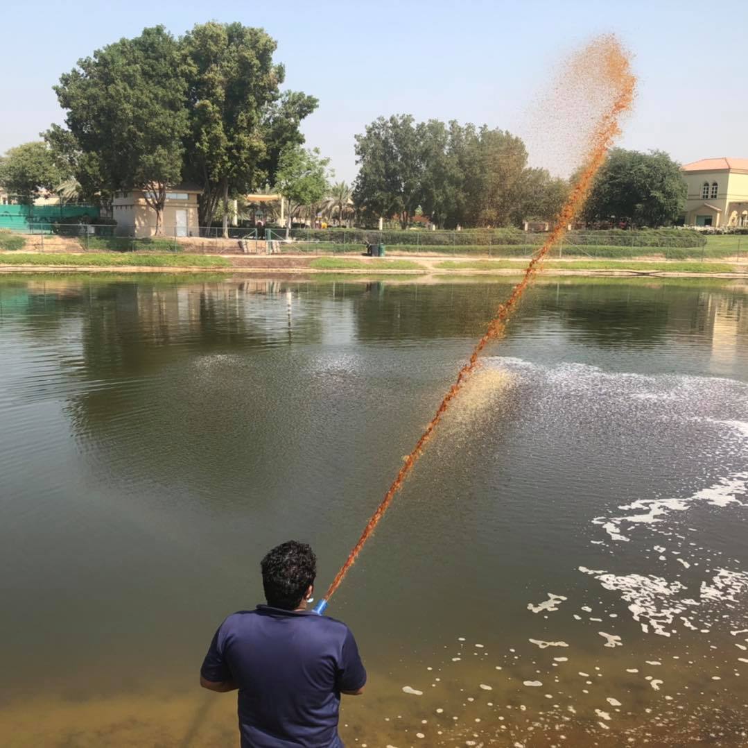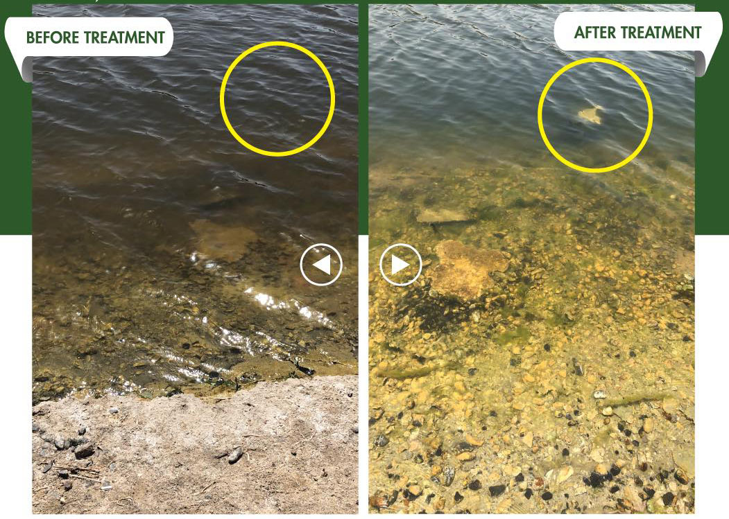 This lake is very big and has 5 waterfalls, so the water is constantly moving to the waterfalls. As the water does not stay, they also applied 20,000 EM Mudballs.