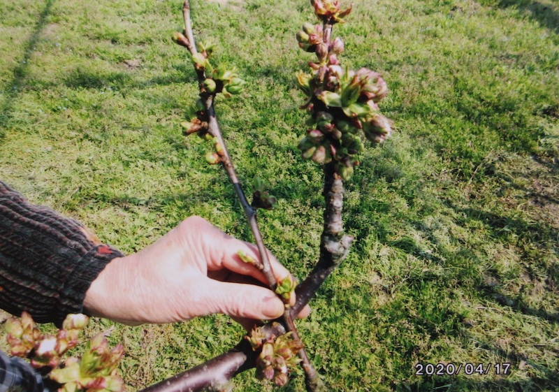 When the first spring had come since the use of EM charcoal, gigantic buds appeared in the orchard.