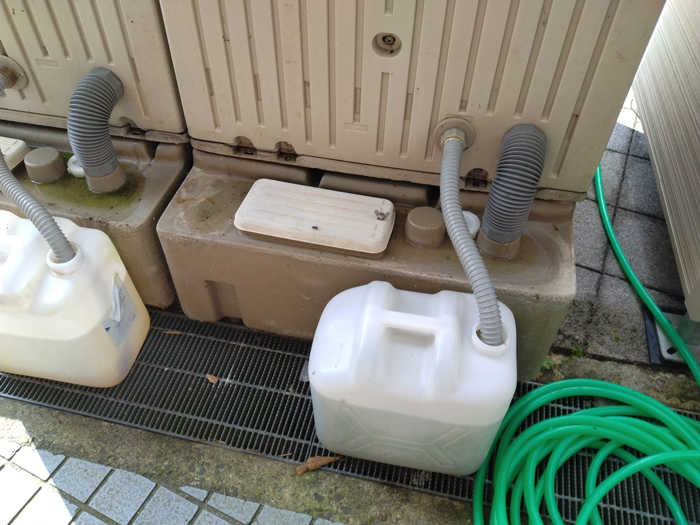 – Volunteers, including Mr. Nakano, divided the AEM into 500ml plastic bottles and treated the portable toilets daily.
