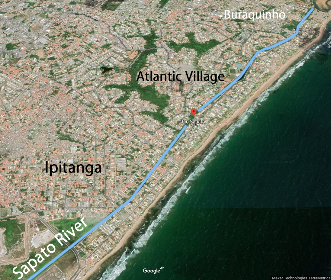 The Sapato River is located in the Metropolitan Region of Salvador, Brazil, both of its source (Abaeté Lake) and its mouth (Joanes River) are located in Ambiental Protected Areas.