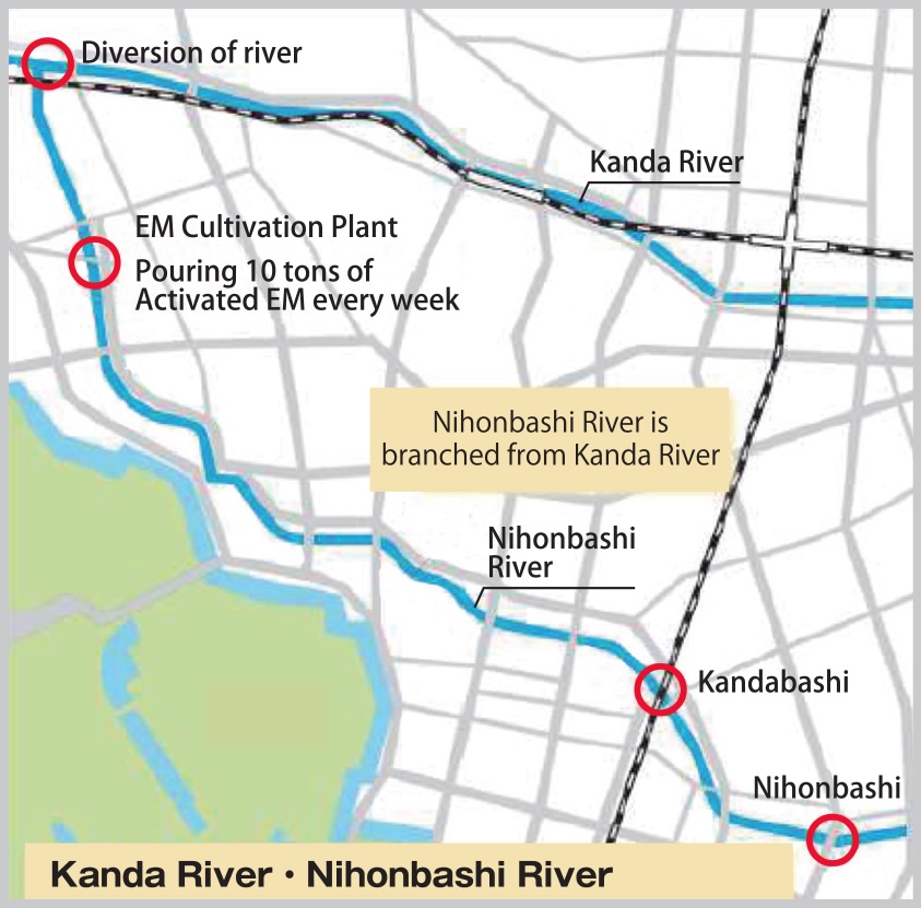 In June 2006, three organizations: the Historic Bridge “Nihonbashi” Preservation Society, the Nihonbashi Corporation Association and the Nihonbashi Rotary Club decided to implement a project to clean up Nihonbashi River with technical support from U-net (United Networks for Earth Environment, NPO), and looked for a location to install Activated EM production equipment.