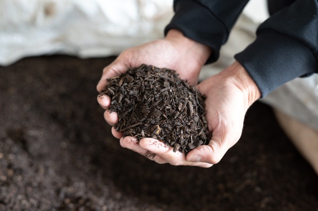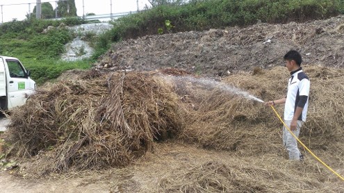 Applying Activated EM・1 to wood chips once every 10 days