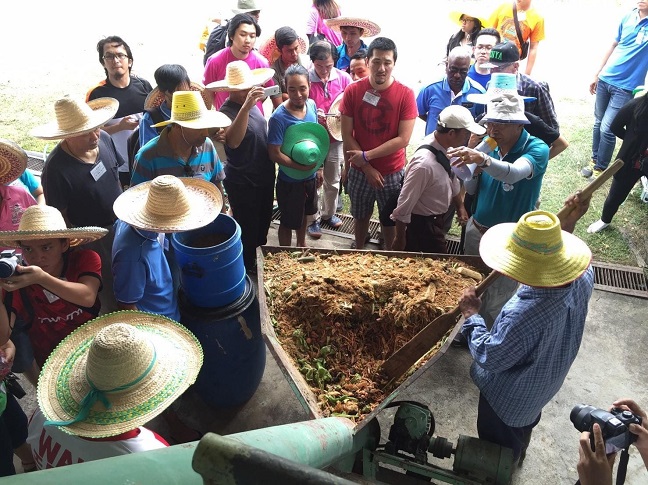 The farm also has a waste recycle site where harvest residue is chopped and mixed by a machine and mechanically put it into plastic buckets to ferment with EM Bokashi and Activated EM.
