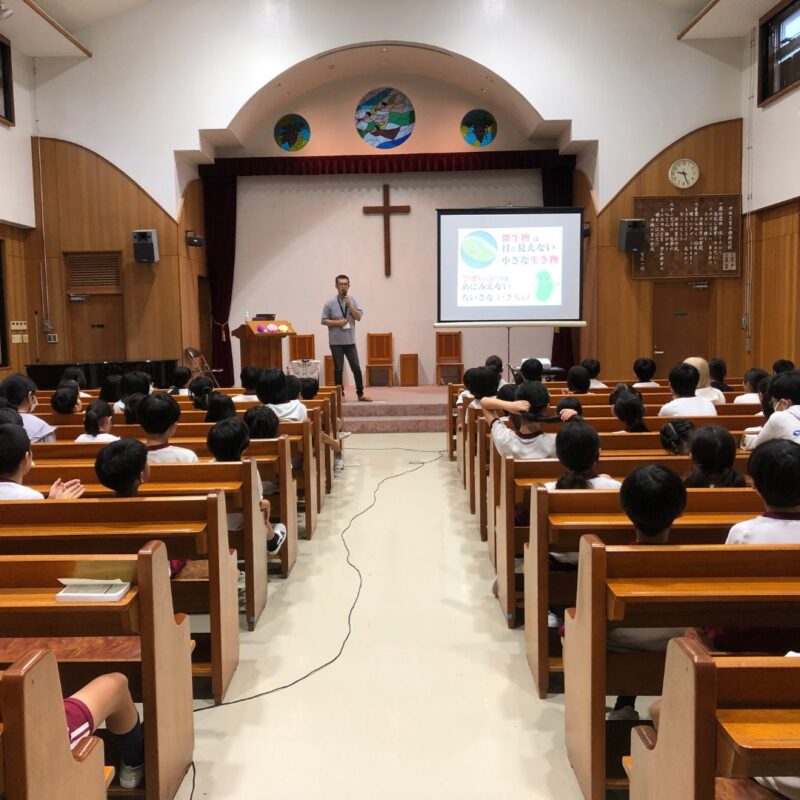 At the schoolchildren’s farm, local elementary school students can enjoy an agricultural experience as part of the environmental study curriculum and social education. In addition, a pre-lecture about knowledge of our environment focused on microbes is also incorporated into the learning program.