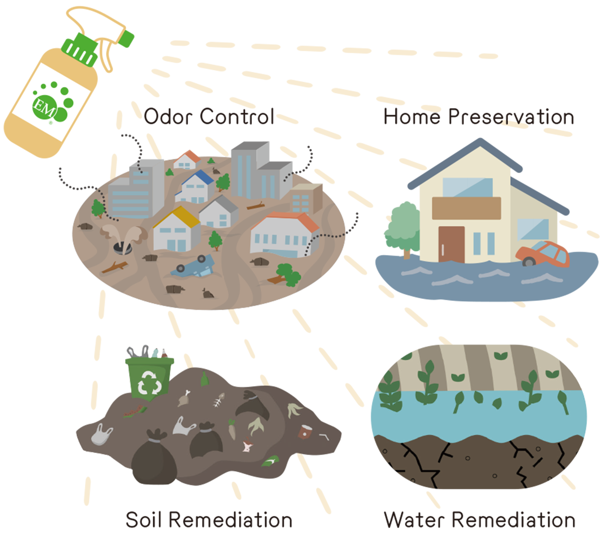 EM Technology provides an eco-friendly tool in times of crisis. Its ability to restore balance in soil, water, and living environments, without harming people, animals, or ecosystems, makes it easy for use in homes, shelters, schools, and farms.